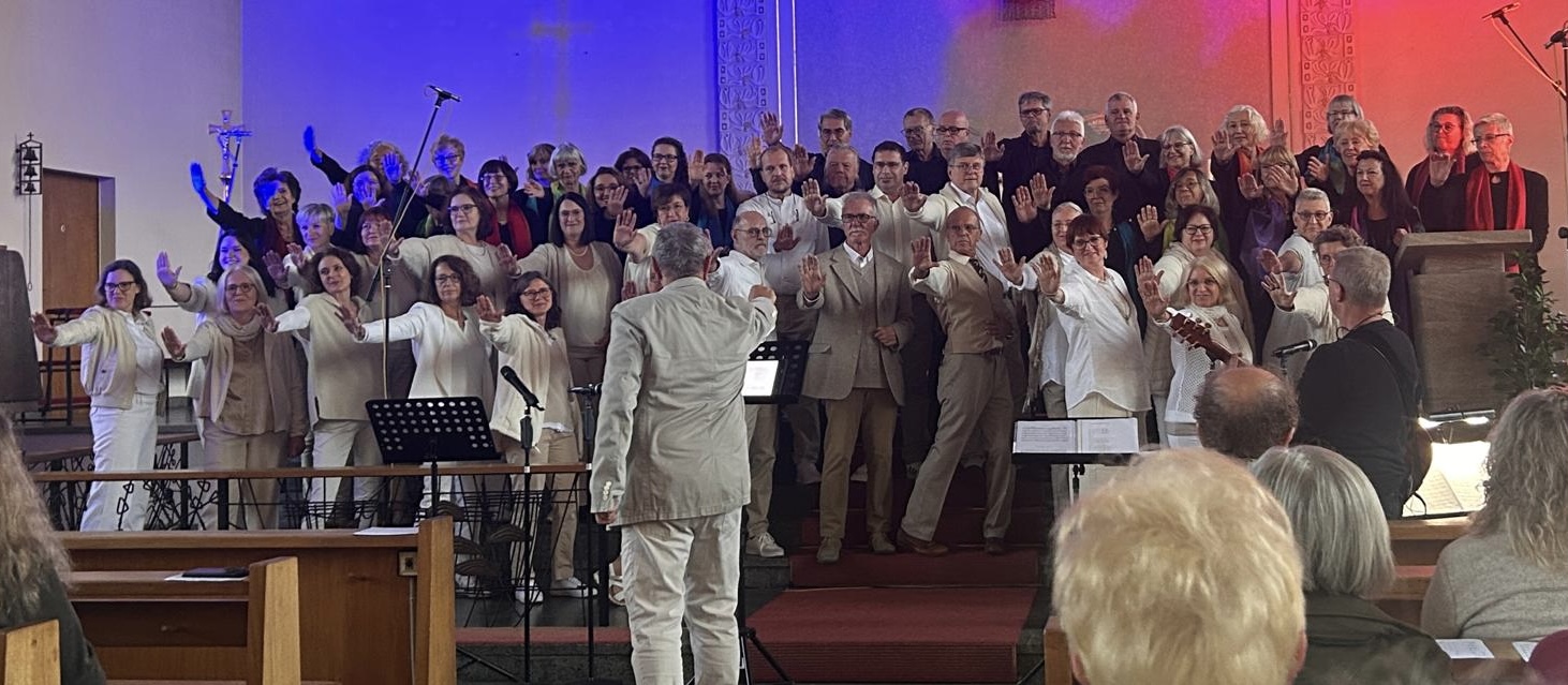 Zum Finale warteten beide Chöre gemeinsam auf mit dem gefühlvollen Gospel Klassiker „Shine Your Light“ (über Hoffnung, Liebe und die Fähigkeit, in schwierigen Zeiten Trost zu finden). Bei mitreißenden „Come Let Us Sing“ (gemeinsam Gott zu loben und Freude auszudrücken) wurde nochmals kräftig mitgeklatscht. Zusammen mit dem Publikum sang man zum Ausklang das „Abendlied“ als Kanon. Sowohl von Seiten Human Nation als auch von Troubadour gab es hervorragende Solisten.