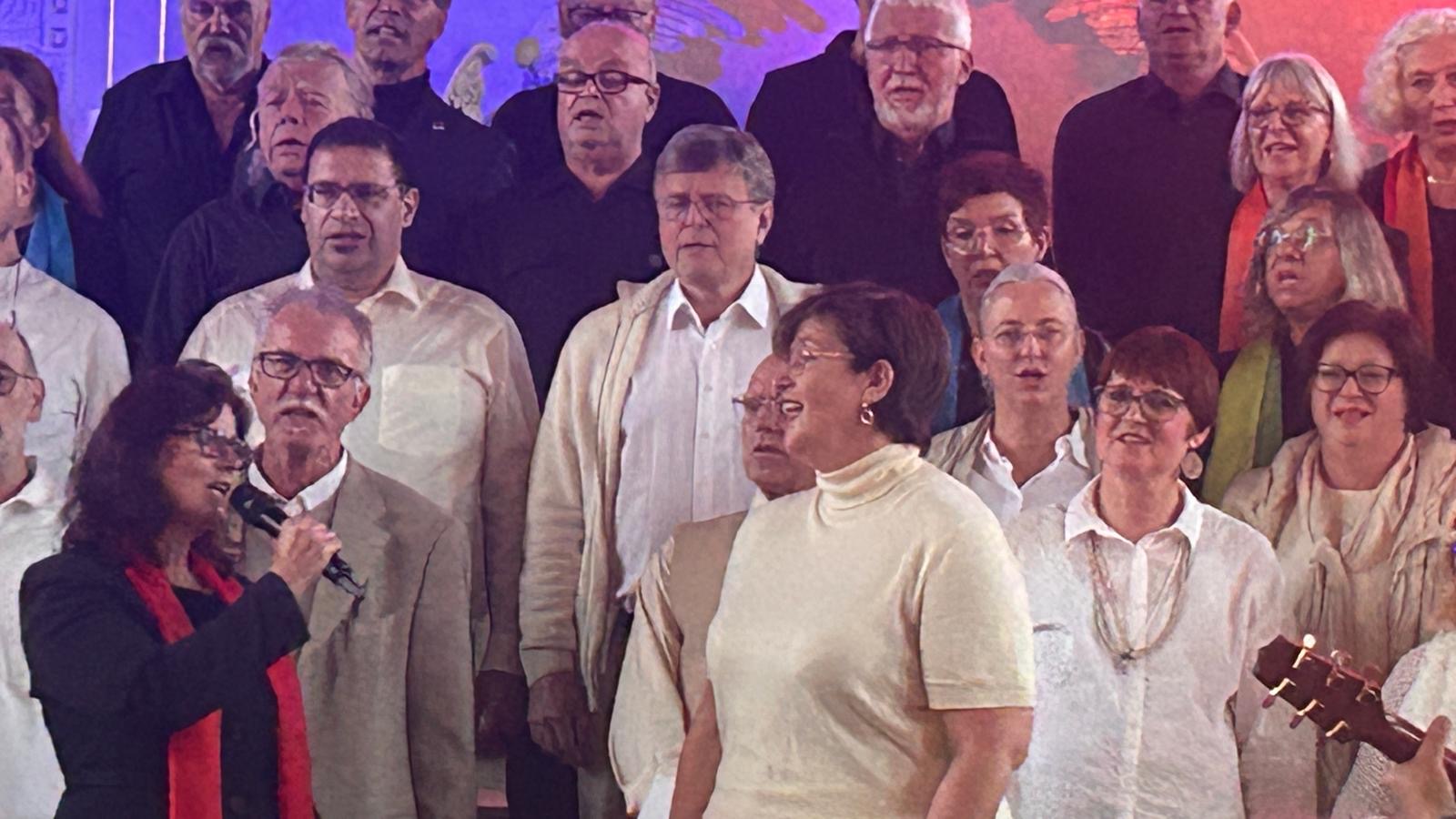 Frieden und Zusammenhalt in der Welt zum Ausdruck gebracht, gefolgt von „Come Let Us Sing“, welches die Freude am gemeinsamen Singen verkörperte und zum gemeinsamen Mitsingen einlud.